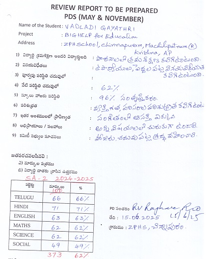 Bighelp thanks Vamshi Bommavaram for kindly sponsoring the education of Gayathri Vadladi. |