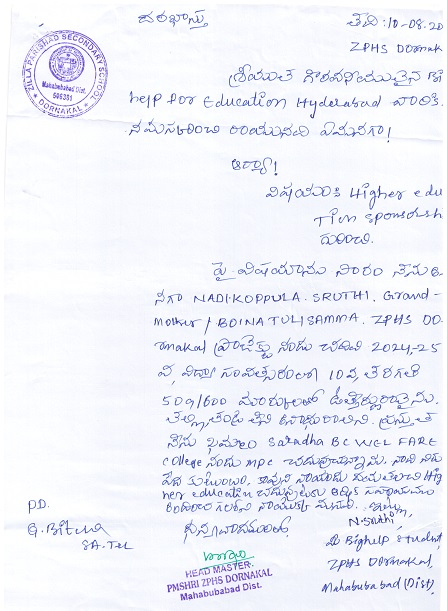 Bighelp thanks Suresh Kosana for kindly sponsoring the education of Sruthi Nadikoppula. |