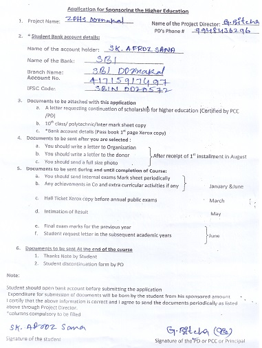 The sponsorship for Afroz Sana Shaik has been continued by Priyanka Pradhan |