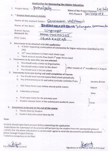 Bighelp thanks Srikanth Gomattam for kindly sponsoring the education of Vaishnavi Gannaram. |