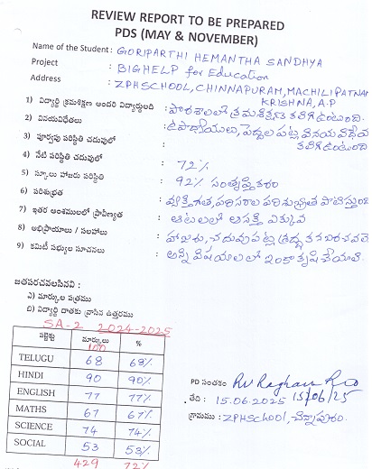 Bighelp thanks Surya Motukuri for kindly sponsoring the education of Hemanth Sandhya Goriparthi. |