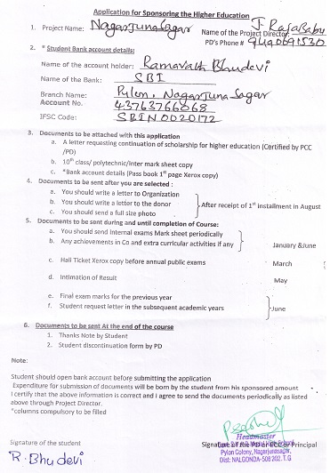 Bighelp thanks Vijay Konda for kindly sponsoring the education of Bhudevi Ramavath. |
