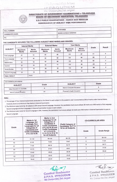 Harsha Vardhan Marri has passed 10th Grade with 431 Marks on