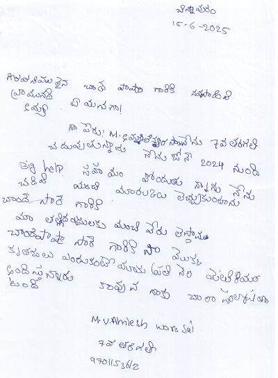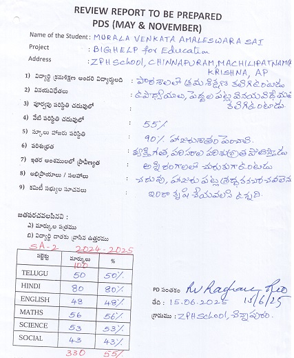 Bighelp thanks Ravisankar Videla for kindly sponsoring the education of Venkata Amaleswara Sai Murala.