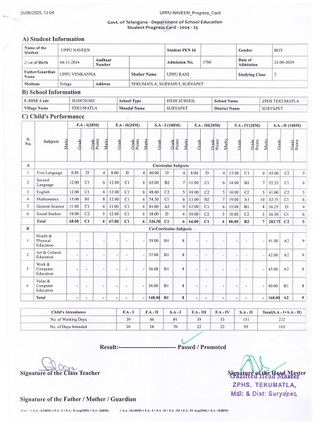 Zilla Parishad High School Kunchaparthy Tekumatla Suryapet Mandal Suryapet Dist. T.S, India 508376 |