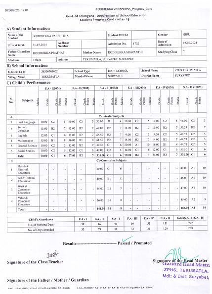 Zilla Parishad High School Tekumatla Tekumatla Suryapet Mandal Suryapet Dist. T.S, India 508376 |