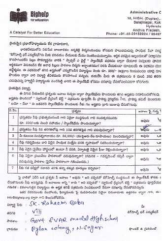 C/O Fathima Shaik Pylon,Nagarjuna Sagar Peddavoora Mandal Nalgonda Dist. T.S, India 508202 |