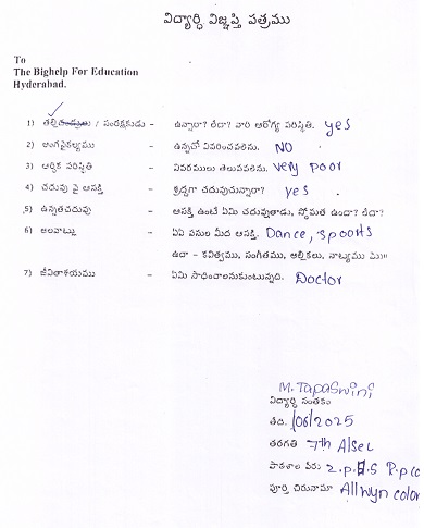 Father died. Financially very poor. |