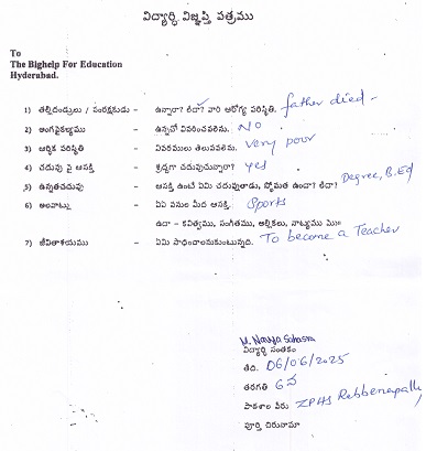 Zilla Parishad High School Rebbenapally Dandepally Mandal Mancherial Dist. T.S, India 504215 |