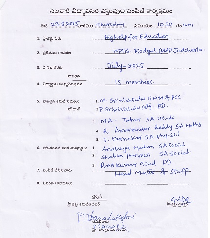 Donated printer and scanner to Z.P.H. School - Kodugal |