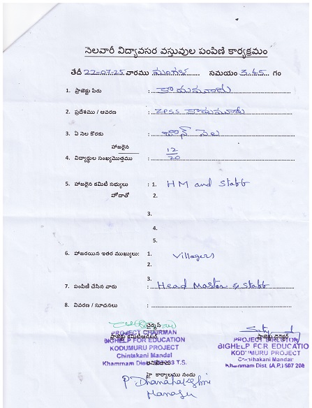 Provided NMMS Material to Z.P. H. School-Kodumuru |