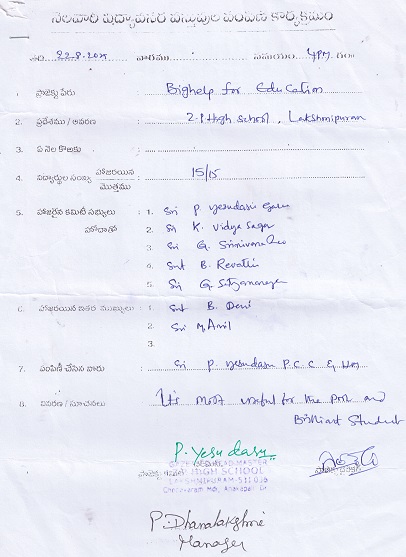 Sponsor A Child - Laxmipuram, Year 2015 -16 |