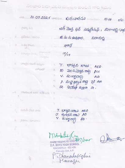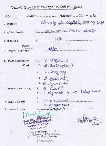 Provided NMMS Material to Z.P.G.H. School-Macherla |