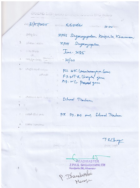 Sponsor A Child - Singarayapalem, Year 2025 - 26 |