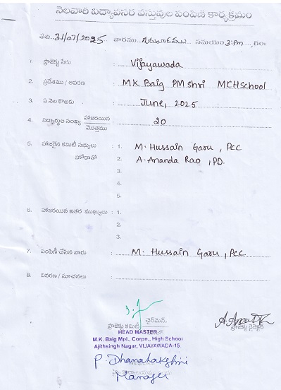 Provided NMMS Material to MK. Baig M.C.H. School-Vijayawada 2022-23 |