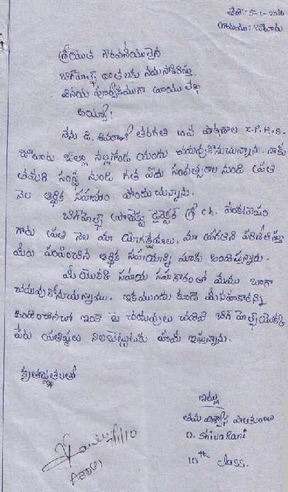 | Bighelp thanks Srinivas Chitta for kindly sponsoring the education of Shiva Rani Donta. |