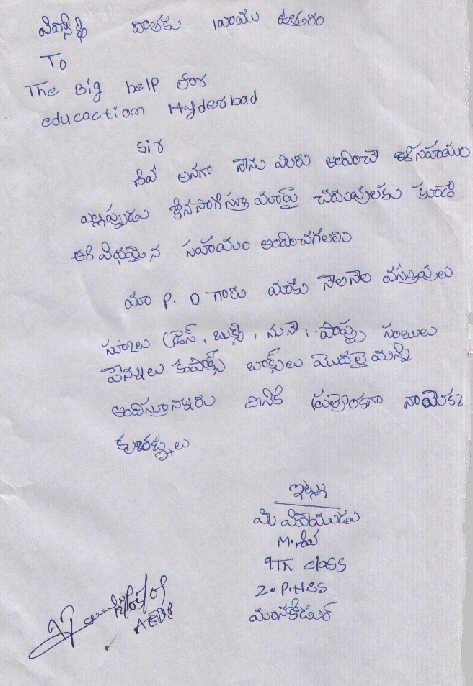 | Bighelp thanks Rajan Foundation (Siva & Ganga Rajan) for kindly sponsoring the education of Shiva Meyapuram. |