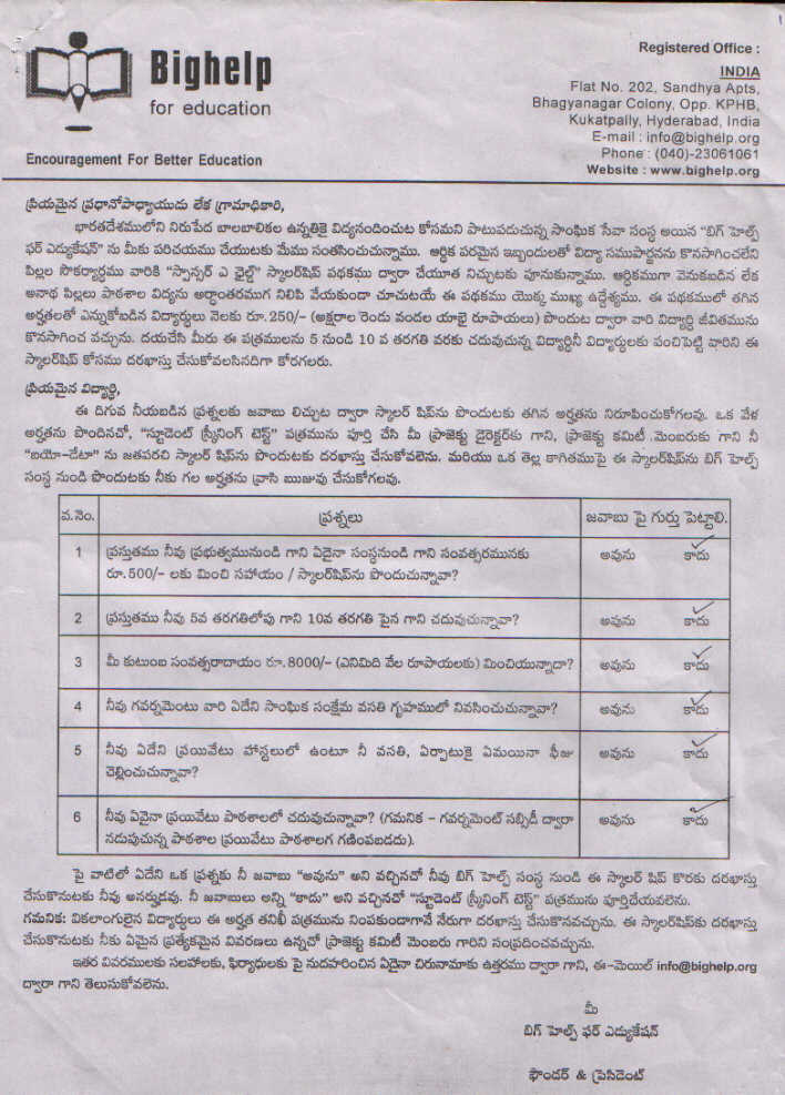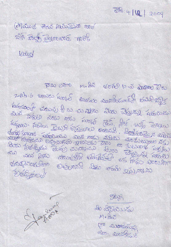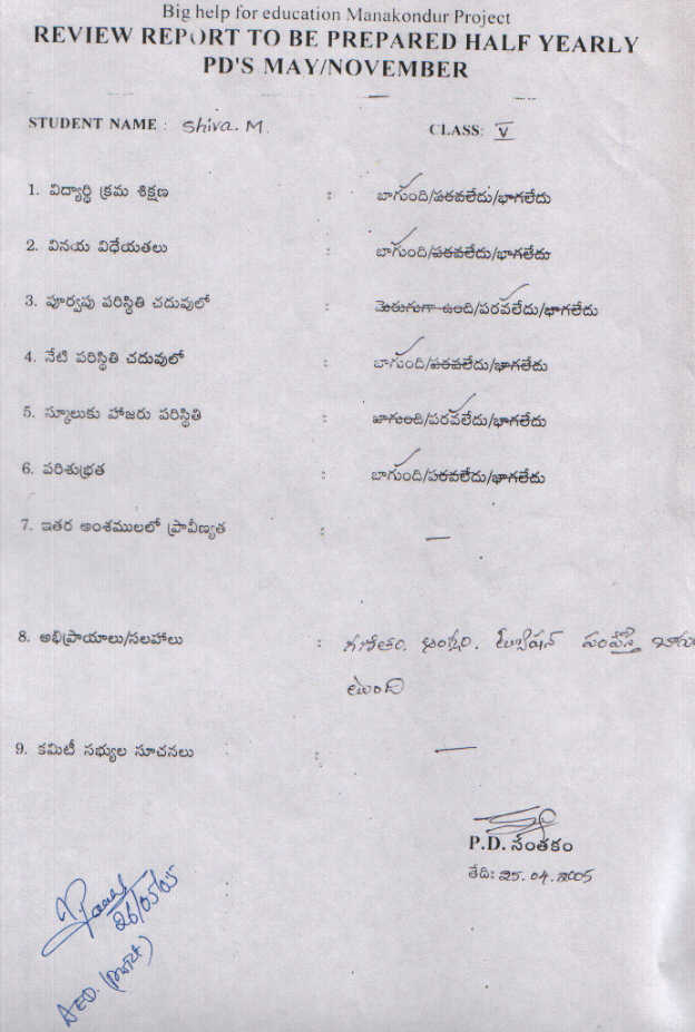 | Shiva Meyapuram was asked to perform at least TEN PERCENT increase in the academic marks (until minimum 60 percent is obtained in every subject) every year to be eligible to continue the sponsorship in following year. |