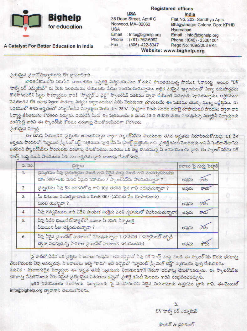 Review of Bhavani as of 17-Sep -06 Bhavani was a clever kid and was doing good in studies. She disconitinued due to family problems. Bighelp thanks the donor for their support towrds this kid.