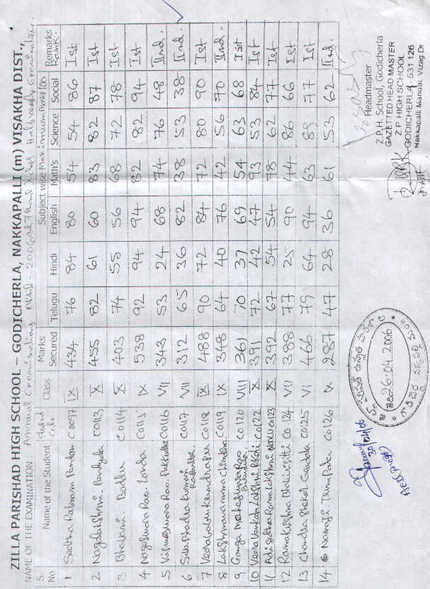 | Shiva Bhadra Kumari Raparthi was asked to perform at least TEN PERCENT increase in the academic marks (until minimum 60 percent is obtained in every subject) every year to be eligible to continue the sponsorship in following year. |