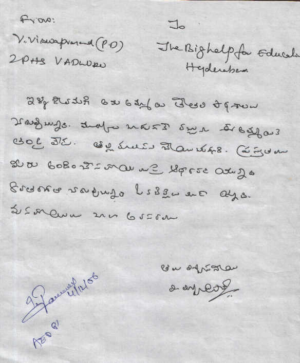 Bighelp thanks Vidya Shankar for kindly sponsoring the education of Jeevamani Illa.