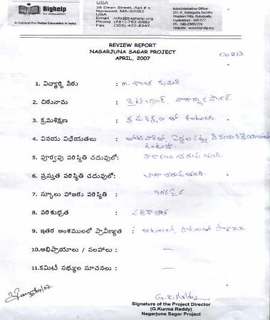 | Bighelp thanks Sreeni Chippada for kindly sponsoring the education of Santha Kumari Malapathi. |
