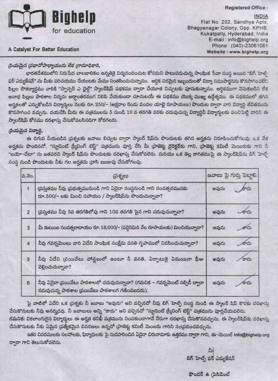 Bighelp thanks Prashanth Abbagani & Geetha Madati for kindly sponsoring the education of Kanakavva Kyasa.