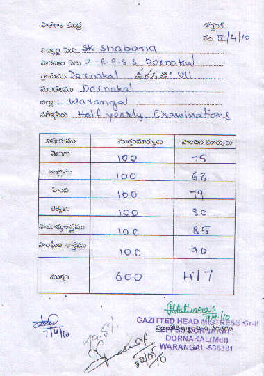 | Shabhana Shaik passed 10th class with GPA 5.5 in the academic year 2012-13 |