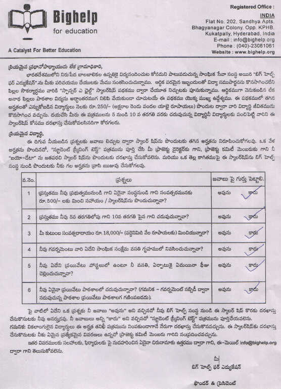 Bighelp thanks Ramaraju Alluri for kindly sponsoring the education of Sandhya Nagamani Bandi.