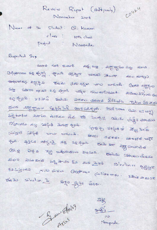 On File Financially very poor Female -N/A- 10 Telugu