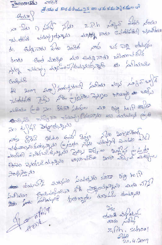 Bighelp thanks Dr. Radha Kishan Motkuri for kindly sponsoring the education of Suresh Babu Daram.