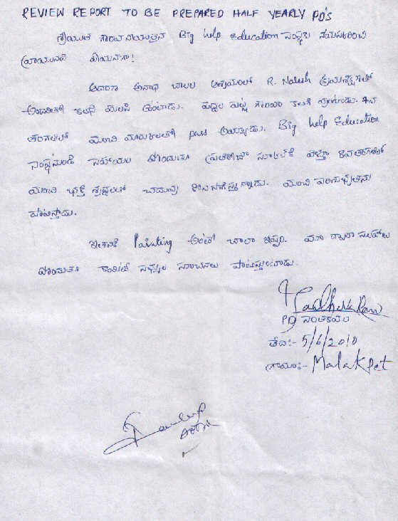 | Bighelp thanks Ravi K Gogula for kindly sponsoring the education of Naresh Rasamalla. |