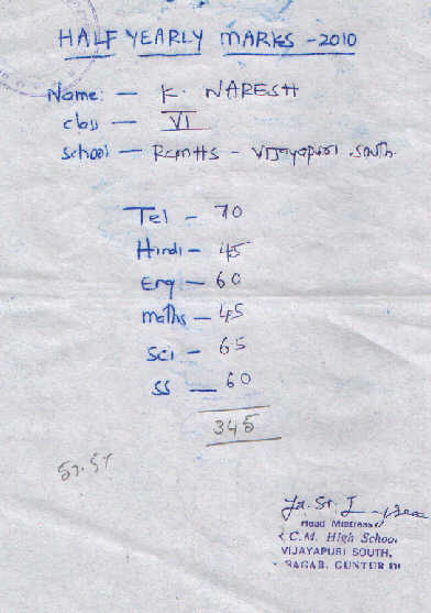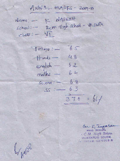 | Naresh Katikala passed 10th class with GPA 7.5 in the academic year 2013-14 |
