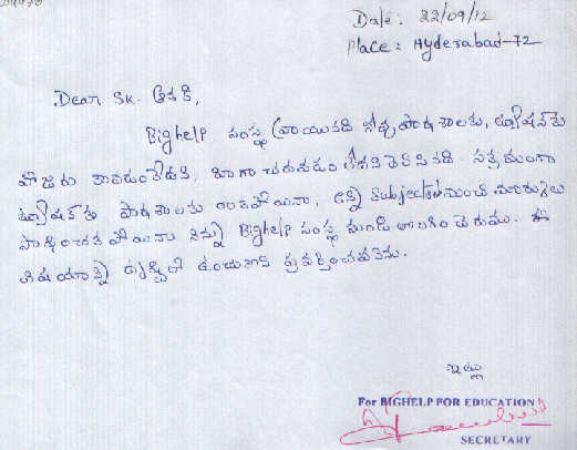 | Bighelp thanks Venkat & Vijaya Maroju for kindly sponsoring the education of Aashiya Shaik. |
