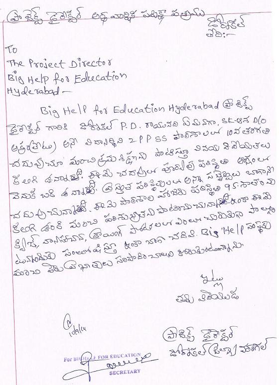 | Executive committee members USA and India talked with Aashiya Shaik during voice conference on 22nd November 2014. They enquired about her education and family welfare. Bighelp assured her that they will continue her sponsorship in the Intermediate if she secure seat in Government College. Bighelp is supporting her from 5th grade to till date. During their conversation she expressed her gratitude to Bighelp and the donor for supporting her. |