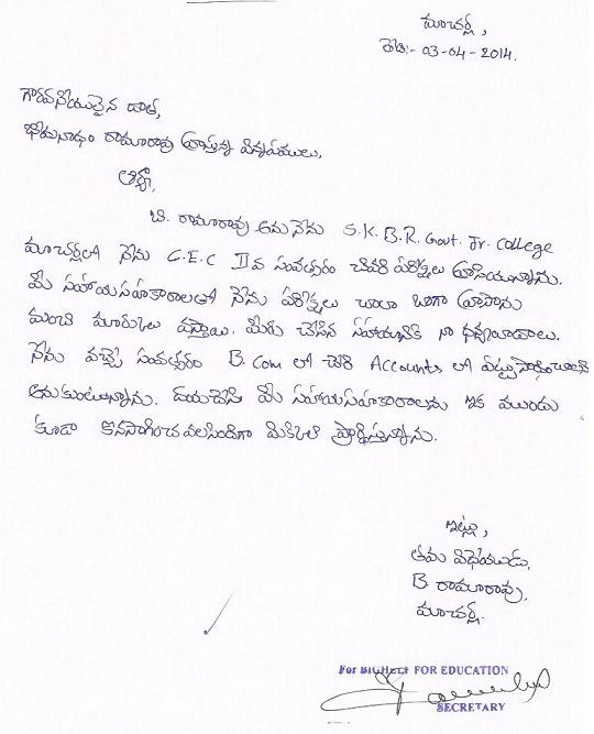 | Rama Rao Bheemanadham passed Intermediate 2nd year in A Grade in the academic year 2013-14 |
