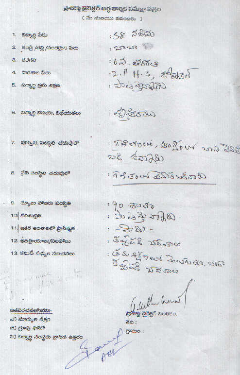 | The sponsorship for Nazeema Shaik has been continued by Ramakrishna Chavali |