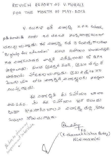 | Bighelp thanks Ravi & Kamala Uppalapati for kindly sponsoring the education of Murali Vaddi. |