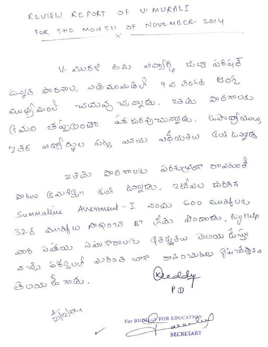 | Executive committee members USA and India talked with Murali Vaddi during voice conference on 06th December 2014. They enquired about his education and family welfare. He said that he is studying well with the help of Bighelp. The Executive committee advised him to show more improvement in his studies. |
