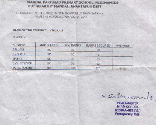 | Murali Vaddi passed 10th class with GPA 7.7 in the academic year 2015-16 |