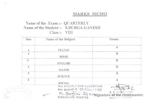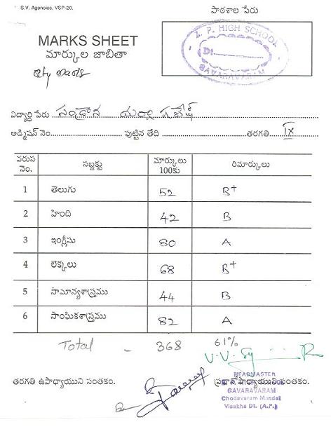 | Durga Ganesh Sandrana passed 10th class with GPA 8.5 in the academic year 2014-15 |