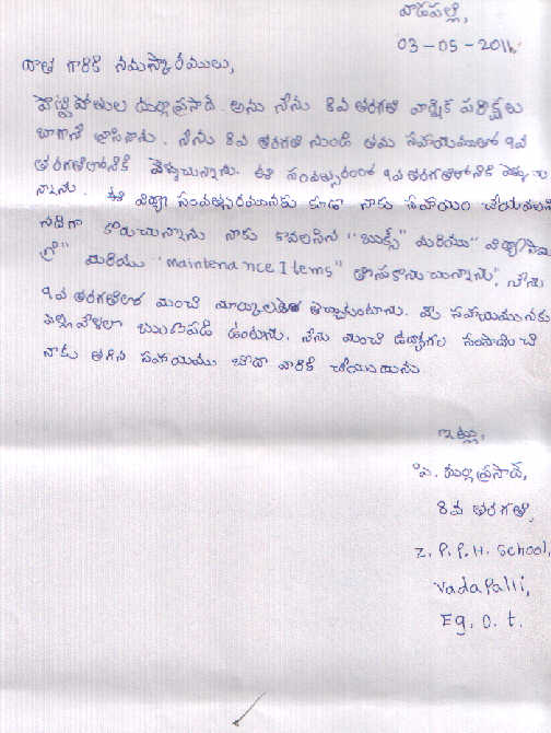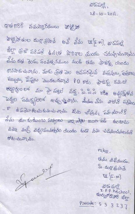 | Bighelp thanks Harish Mothe for kindly sponsoring the education of Durga Prasad Pottipothula. |