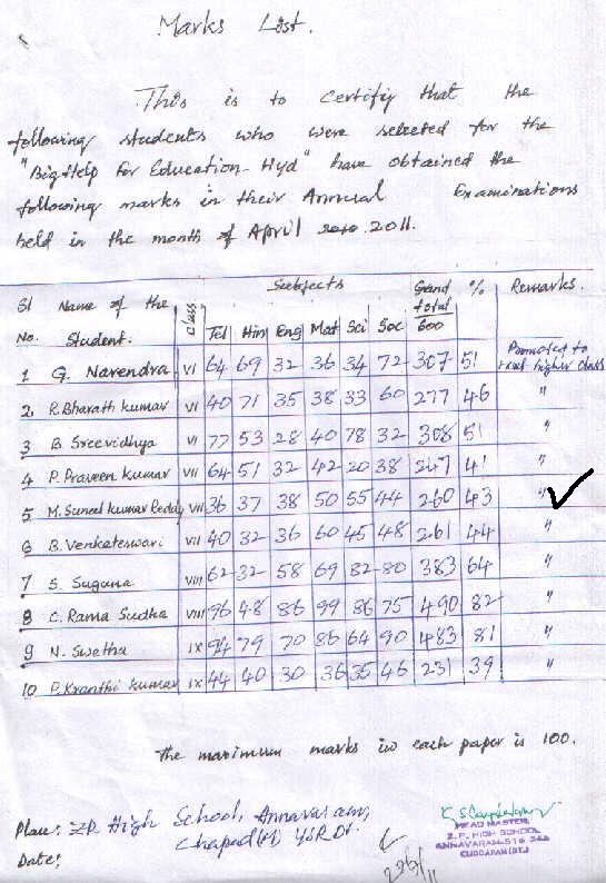 Bighelp thanks Gopi Ega for kindly sponsoring the education of Suneel Kumar Reddy Malireddy.