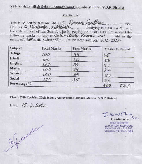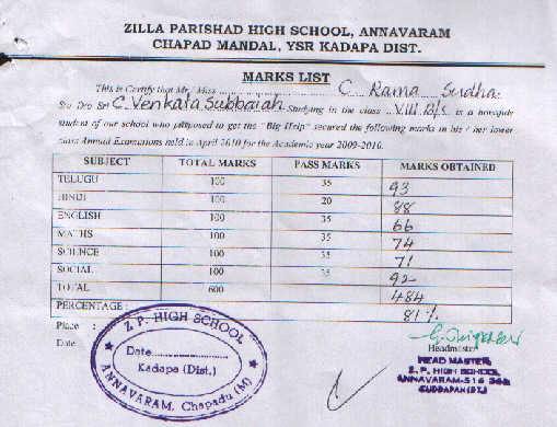 | Ramasudha Challa passed 10th class with GPA 9.3 in the academic year 2012-13 |