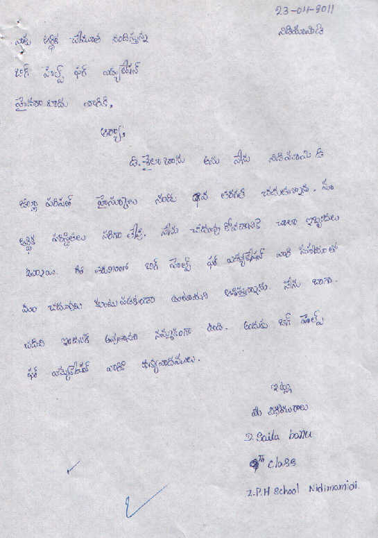 | Bighelp thanks Mahesh Jemolla for kindly sponsoring the education of Sailabanu Dudekula. |