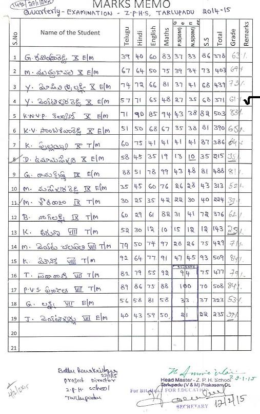 | Venkateswara Reddy Yarava passed 10th class with GPA 8.2 in the academic year 2014-15 |
