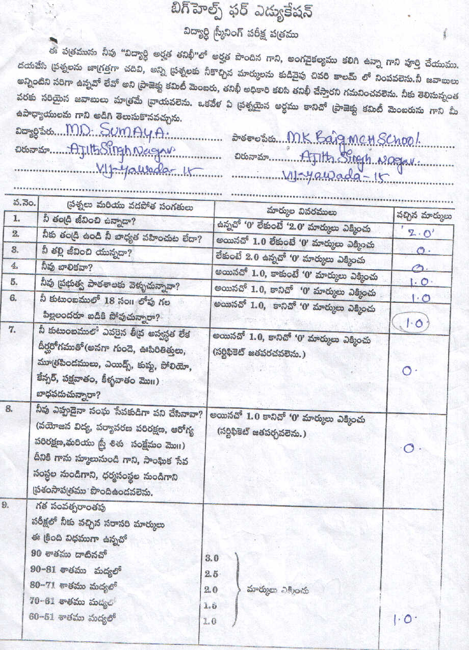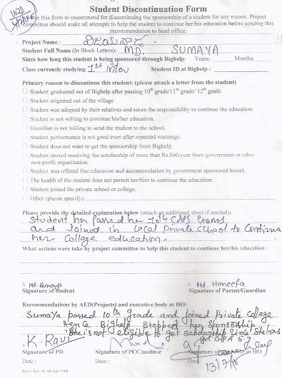 | Bighelp thanks Vijay Konda for kindly sponsoring the education of Sumaya Mahammad. |
