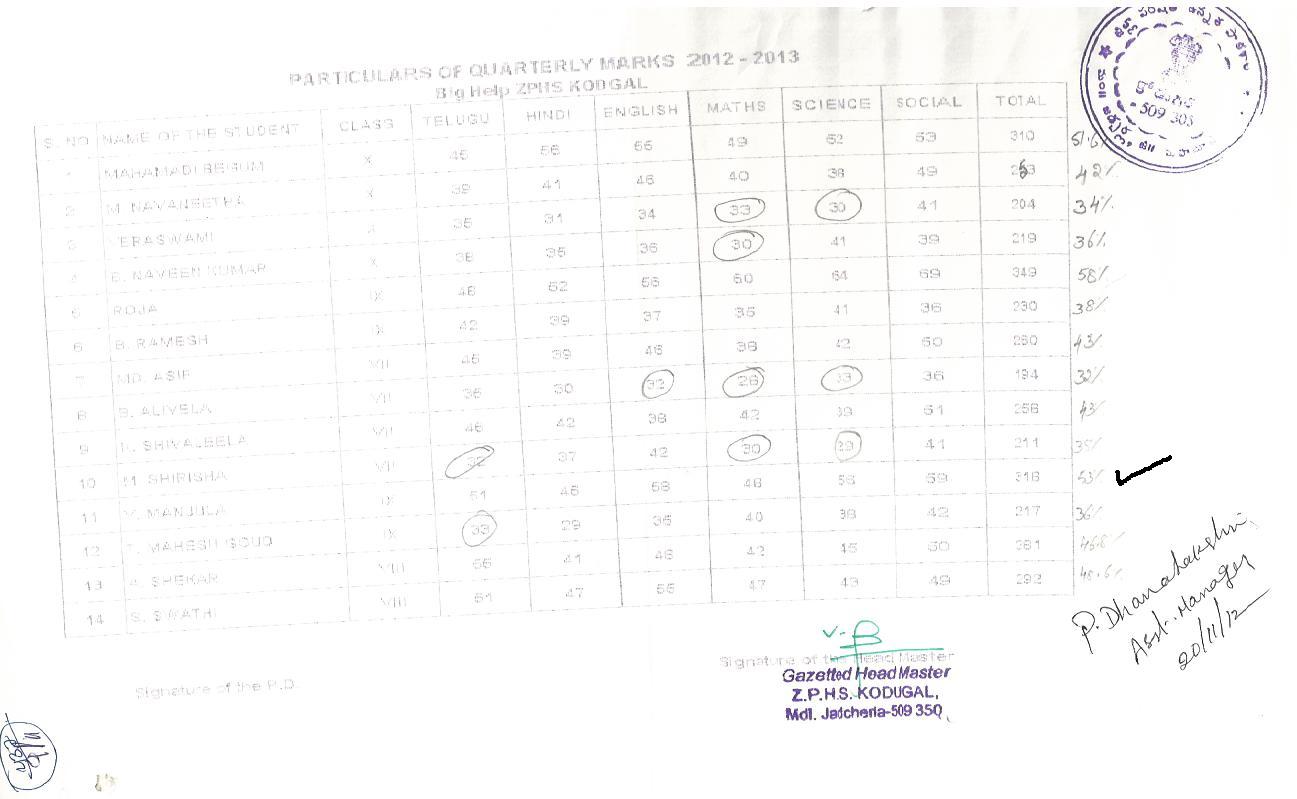 | Manjula Vannem passed 10th class with GPA 7.2 in the academic year 2013-14 |