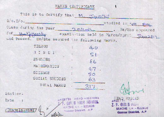 | Jyothi Manavareddy passed 10th class with GPA 7.5 in the academic year 2014-15 |