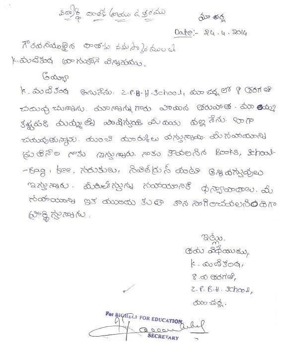 | Bighelp thanks Satheesh & Manjula Donthy for kindly sponsoring the education of Manikanta Kottamasu. |